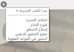 هذا الرمز معناه أن هناك هذا العدد من الكتب الجديدة، بالإشارة على الرمز تجد تلميحا بأول 10 كتب منها (زمنيا)، (وبالنقر على الزر تنتقل لشاشة الترقية الحية)